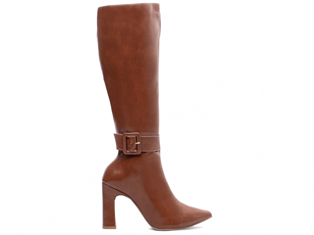 Enfeites: Zíper na Cor Caramelo (lateral interna) e Tira em Napa Caramelo com Fivela Encapada. A tira com fivela é removível (pode usar sem a tira), ou seja, duas opções de look na mesma bota;