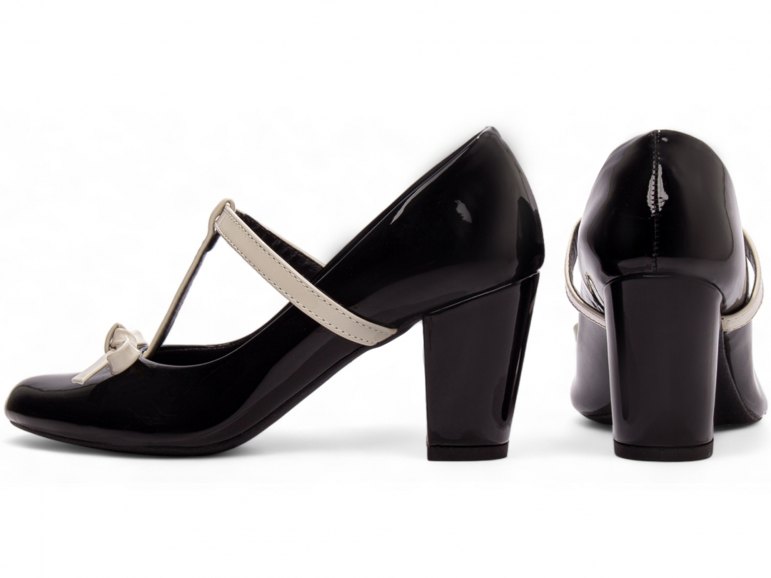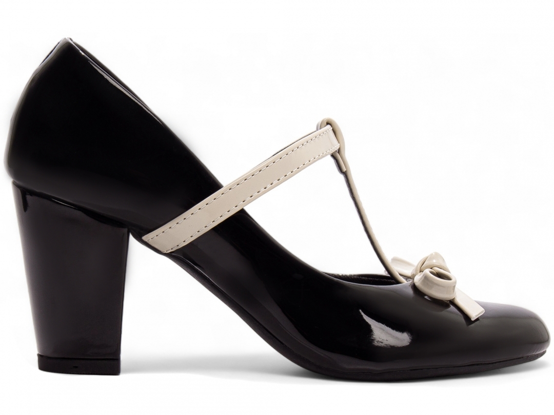 Salto: 7 cm de Altura encapado em Verniz Preto;