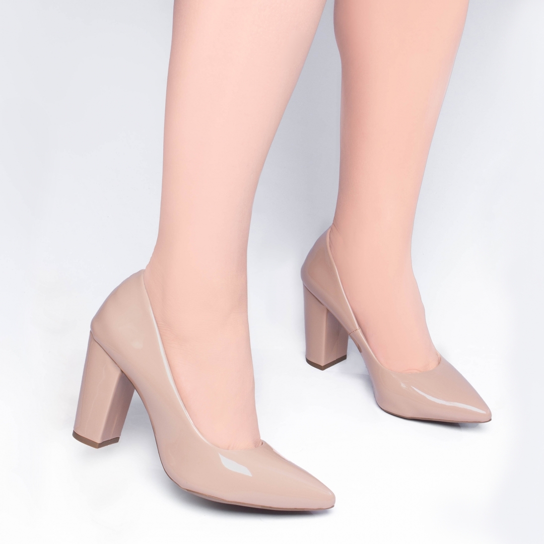 Salto: 8,5 cm de Altura encapado em Verniz Rose;